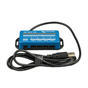 The GX Tank 140 takes readings from up to four tank level sensors. It is an accessory for our range of GX system monitoring products, of which the Cerbo GX is the most commonly used model.